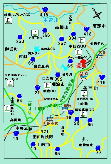 中央自動車道「瑞浪IC」から約14km、「恵那IC」から約10km |