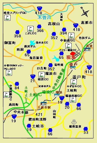中央自動車道「瑞浪IC」から約14km、「恵那IC」から約10km |