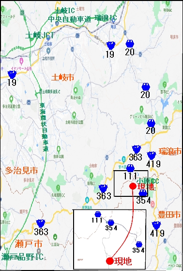 名鉄瀬戸線 「尾張瀬戸駅」 から約 23km 中央本線 「瑞浪駅」 から約 15km |