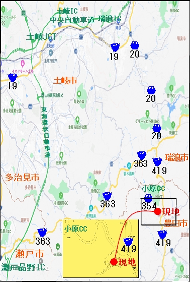 東海環状自動車道 「瀬戸品野IC」から約 18km 中央自動車道 「瑞浪IC」から約 16km |