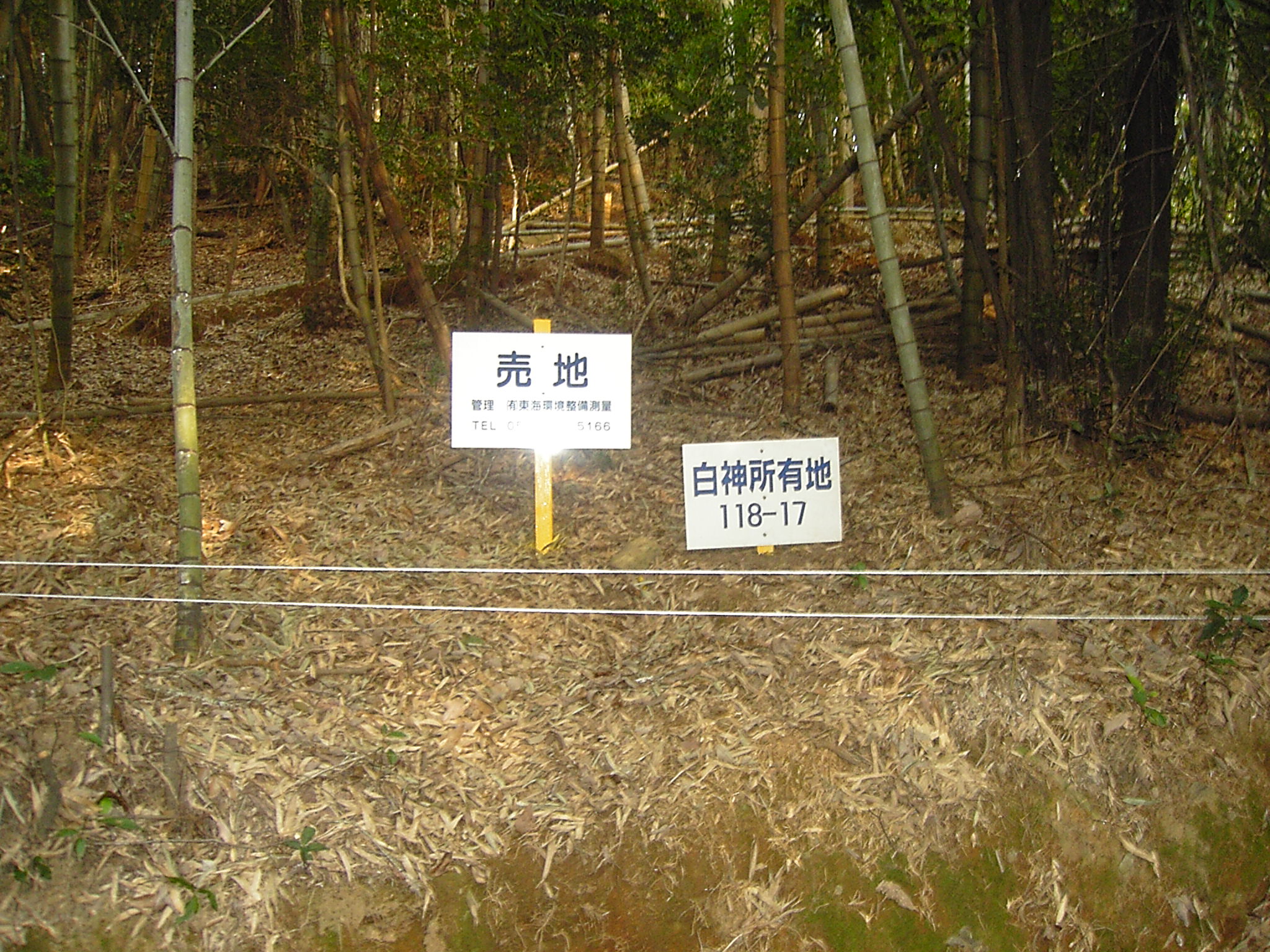 現地状況 区画内道路部は未整備ながら分譲地入口に近く、車での進入可能、現況は 竹・雑木有、緩やかな丘陵地の分譲地で少し高台に位置し、環境・景観良。 |