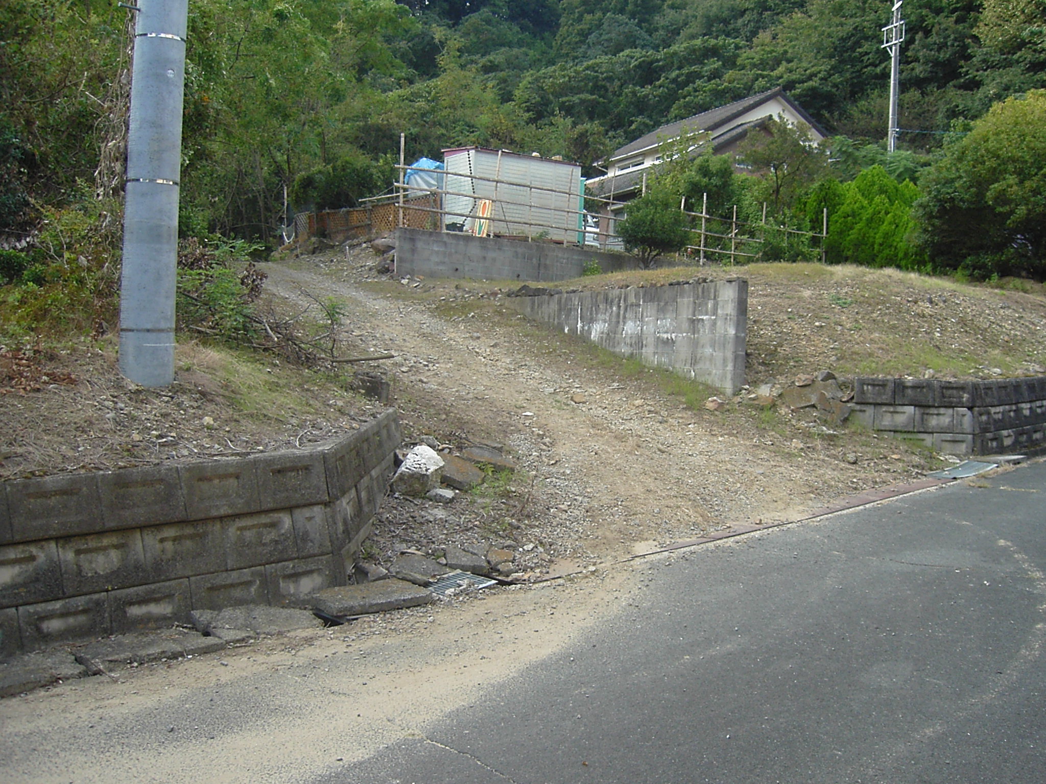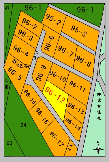 現地状況 昭和の50年代に小規模に開発分譲され、現地は赤坂台住宅に隣接し、 各区画は平地で形状は良、区画内道路は未舗装未整備。 |