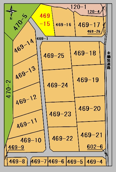 現地状況 分譲地入口区画から3区画の景勝地で、草木少なく用途多様、分譲地内 未舗装道路ながら当区画前まで進入可能。 |