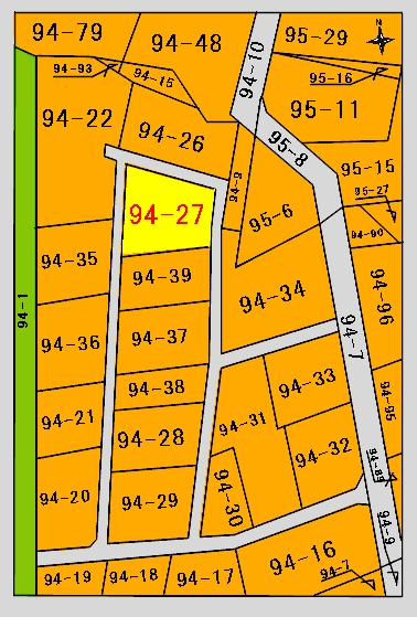 現地状況 住宅地に隣接する昭和53年代開発の開発分譲地、全体の区画は粗平地で 分譲地内道路部は2メートル幅がありますが現況未整備で未舗装 |